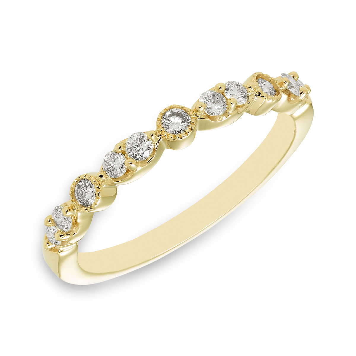 • Heirloom Elegance Yellow Gold, Vintage-Inspired Diamond Wedding Band: 0.14 CTTW