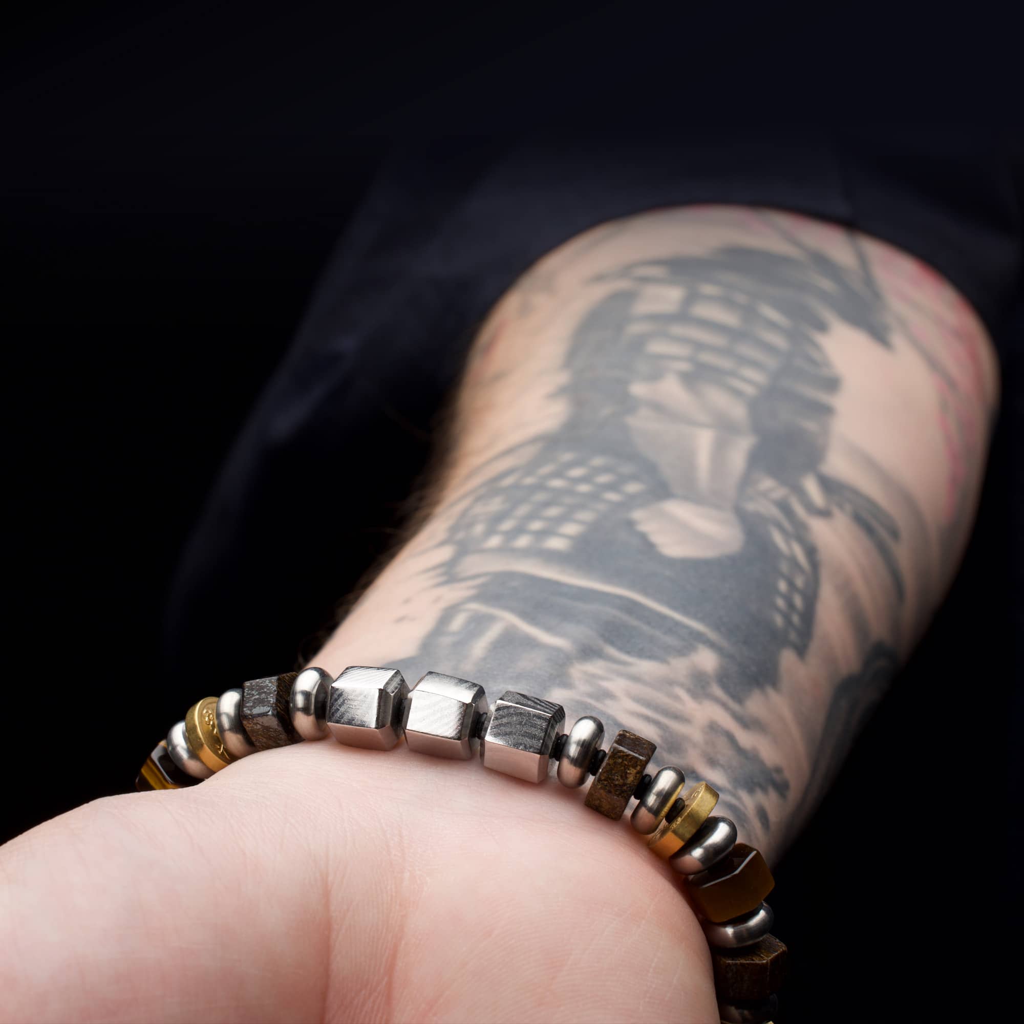 Mokume Gane, Bronzite and Tiger's Eye Beads Bushido Virtue Bracelet